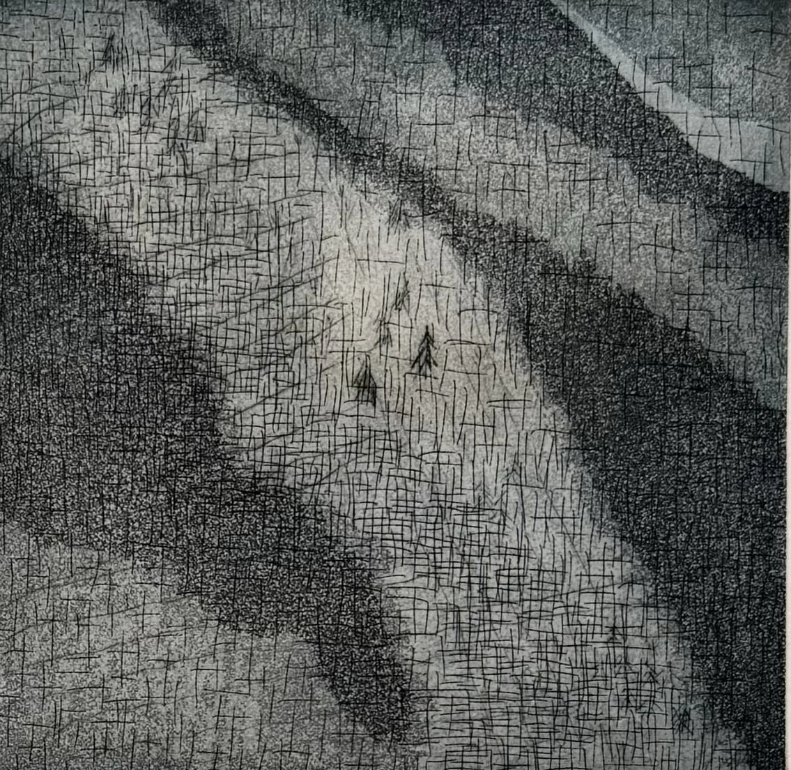 Die Radierung ist eine Tiefdrucktechnik, das heisst die Farbe wird in die Vertiefungen gerieben. Ätzt man die Platte aber tief genug, kann sie auch im Hochdruck benutzt werden. Geometrisch/organisch Pro/Contra Pro/Contra 2 Spuren Monotypie Buchenblätter Pusteblume Silberlinge Steine im Wasser schwarz Steine im Wasser orientblau Steine im Wasser preussischblau Schilf Landschaften Rinde schwarz Holzbeige New York Kreis Blumen in meinem Garten II rot-gelb-blau