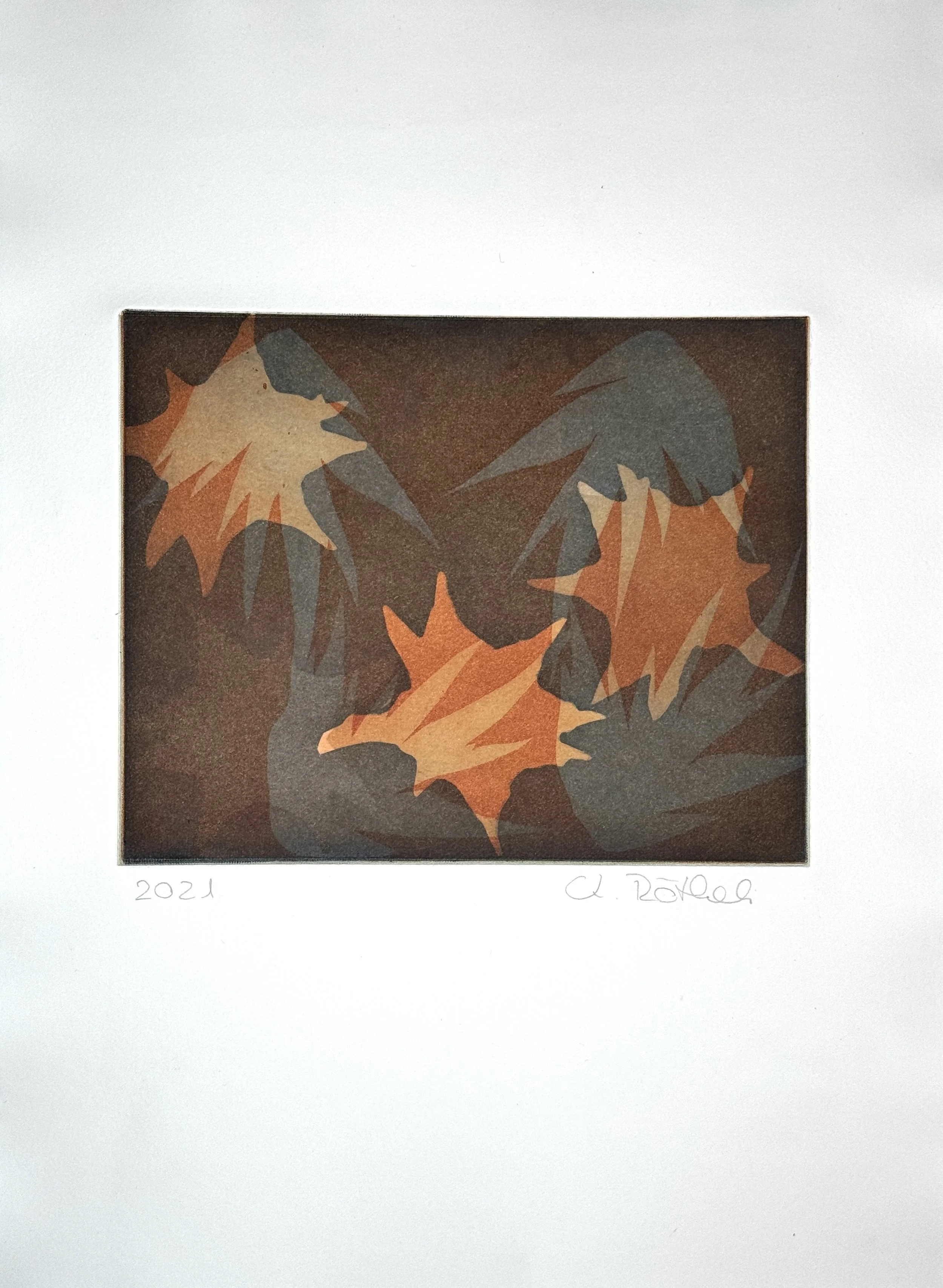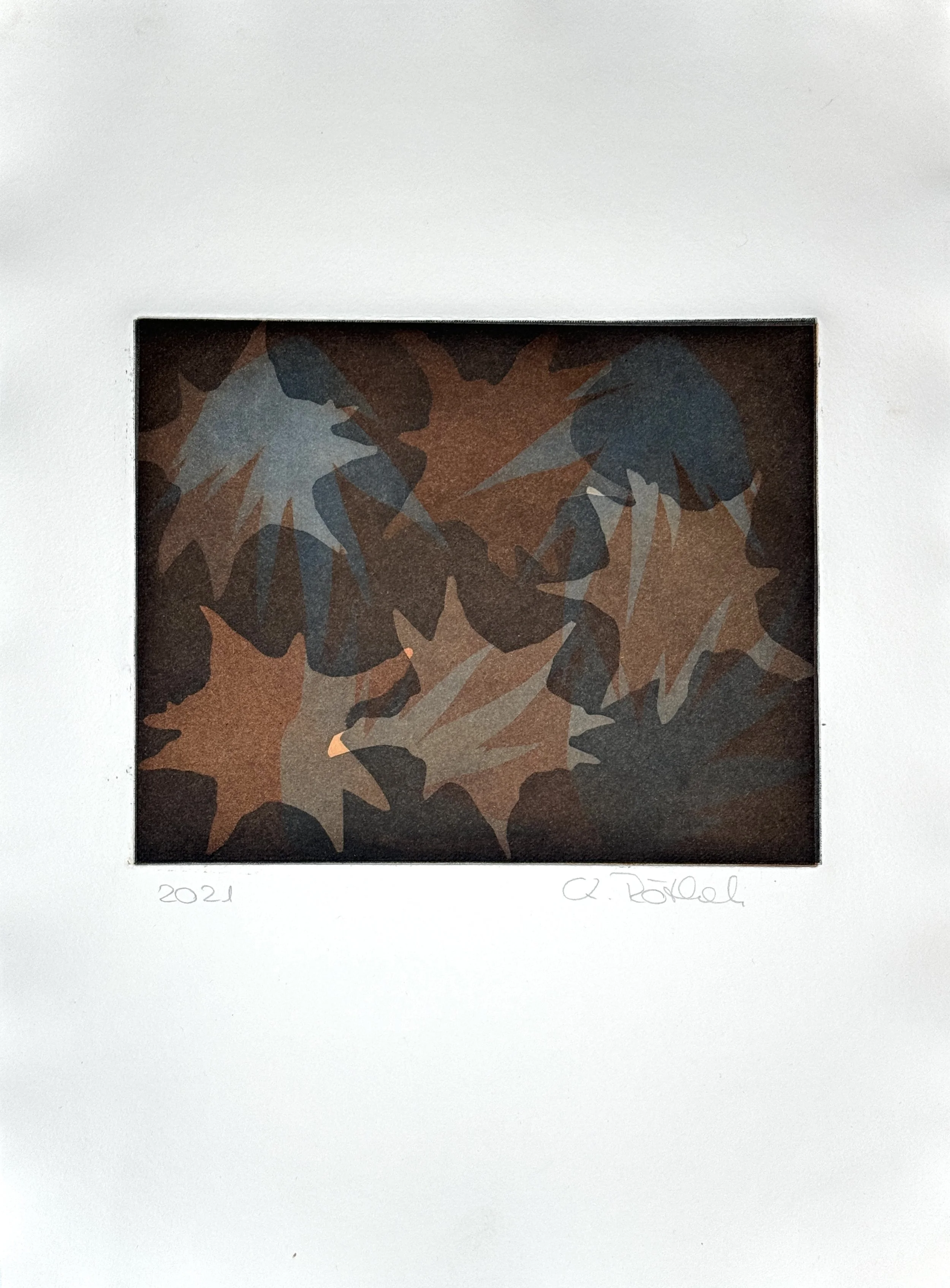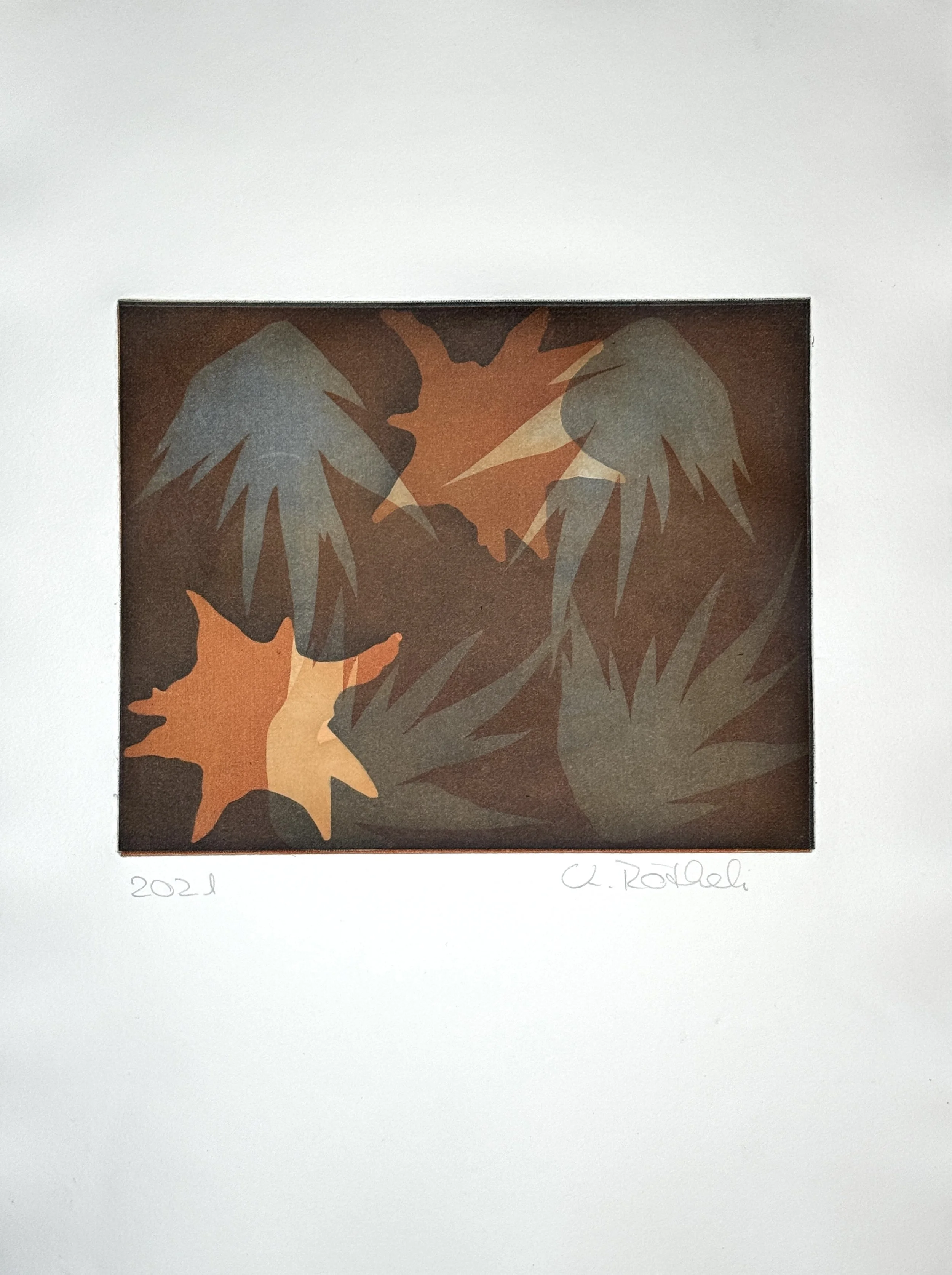 Blumen in meinem Garten II, 2021, Serie ocker-grauDreiplattendruck, AquatintaPlattengrösse 15,8 x 19,8 cm Im Vollbildmodus anzeigen Im Vollbildmodus anzeigen Im Vollbildmodus anzeigen