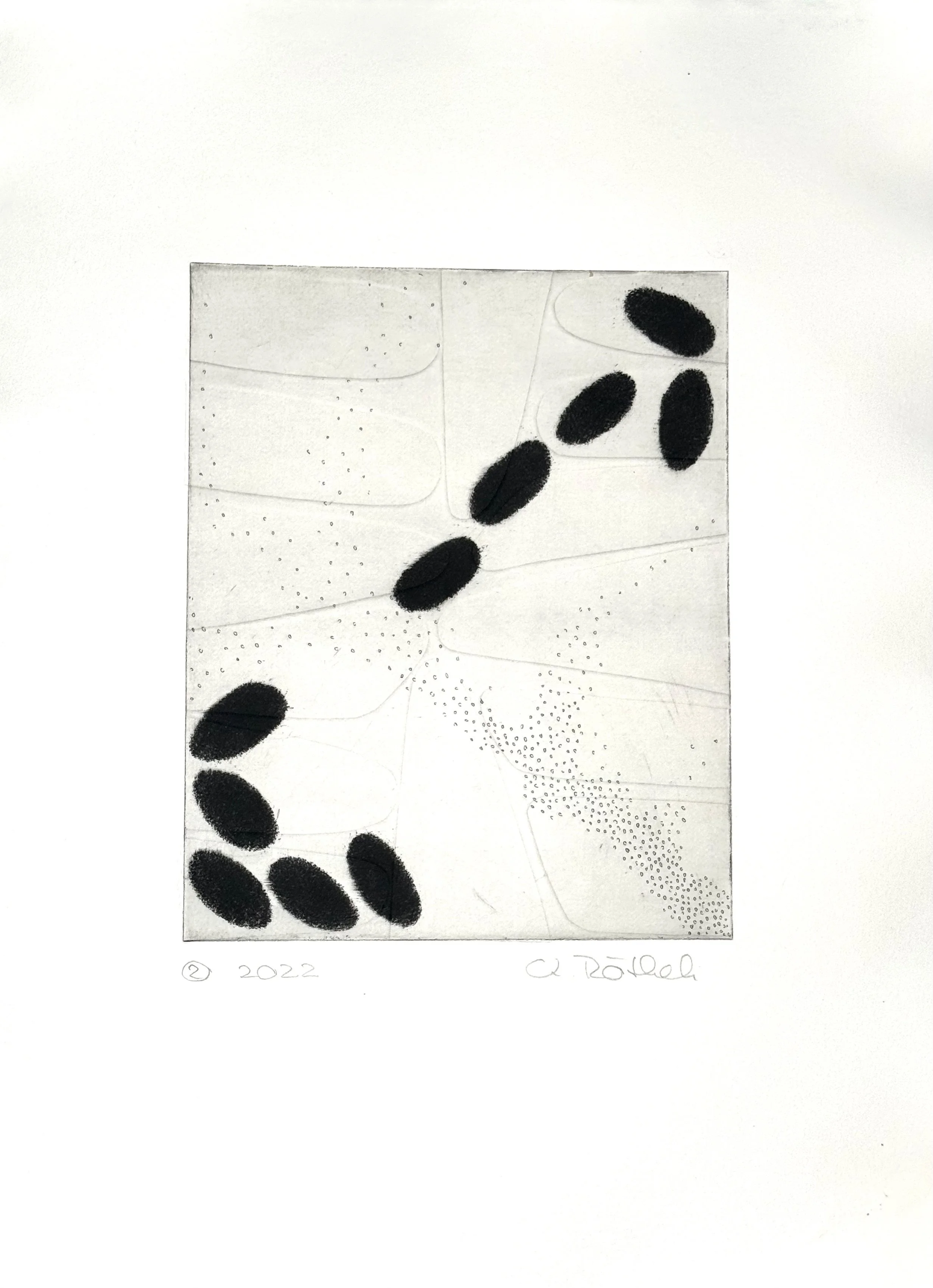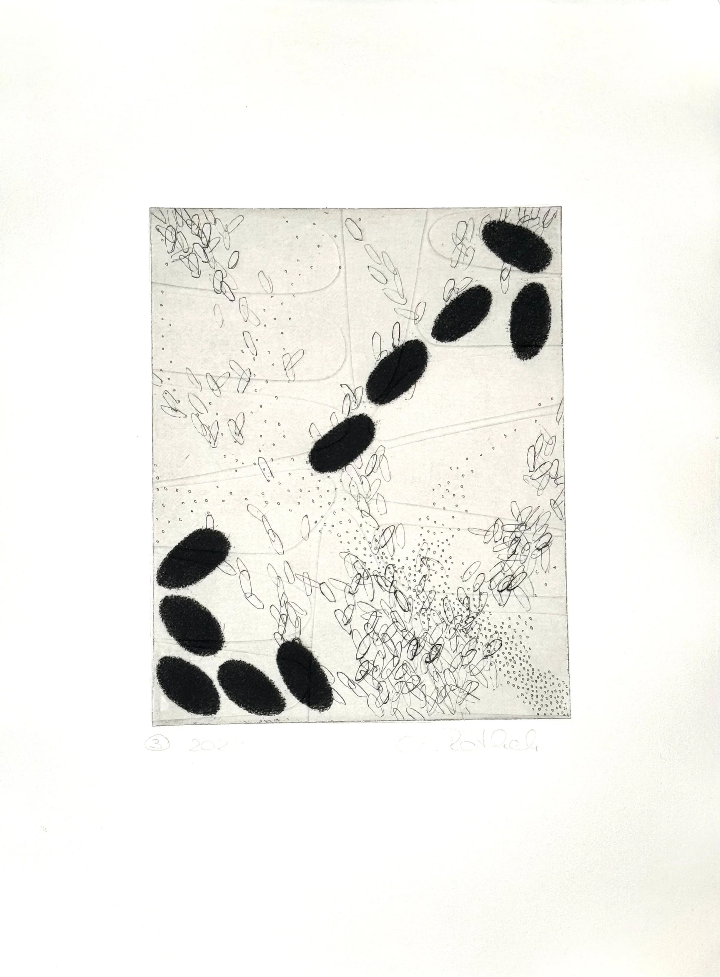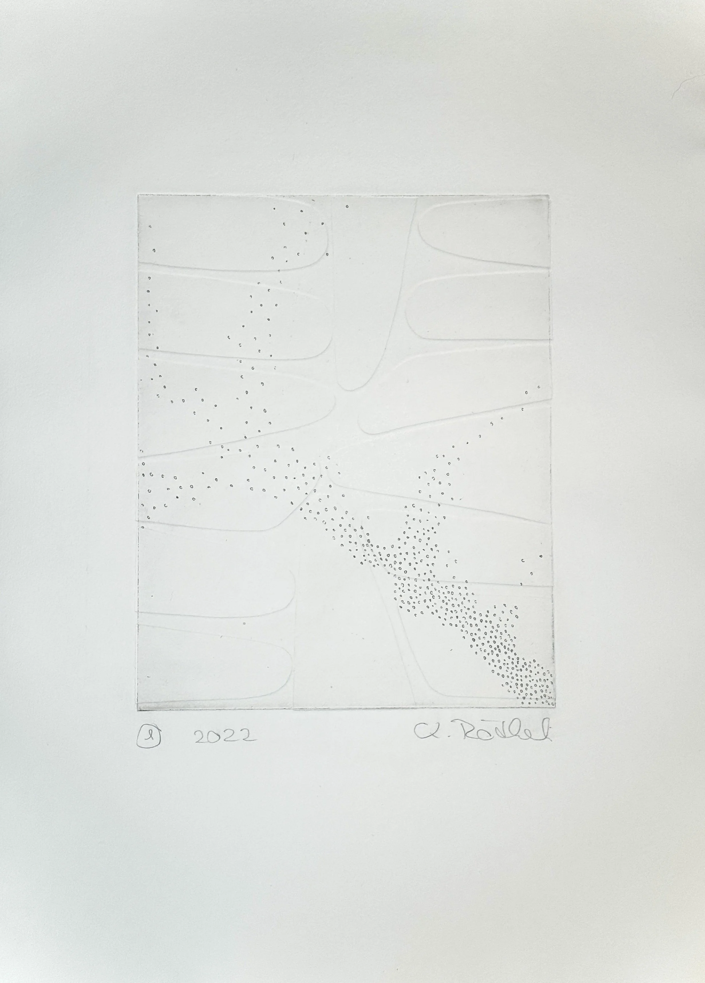 Spuren, 2022Radierung, Prägedruck, Aquatinta, Mezzotinto, KaltnadelPlattengrösse 15,6 x 19,5 cmProzess 1-6, Auflage 3 Im Vollbildmodus anzeigen Im Vollbildmodus anzeigen Im Vollbildmodus anzeigen Im Vollbildmodus anzeigen Im Vollbildmodus anzeigen Im Vollbildmodus anzeigen