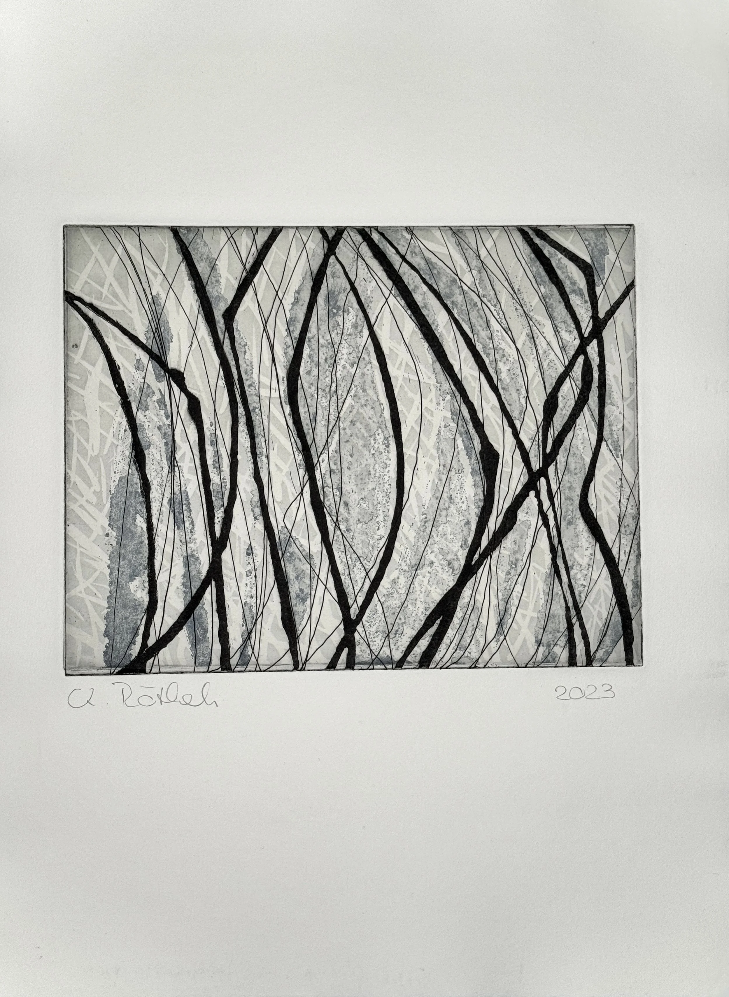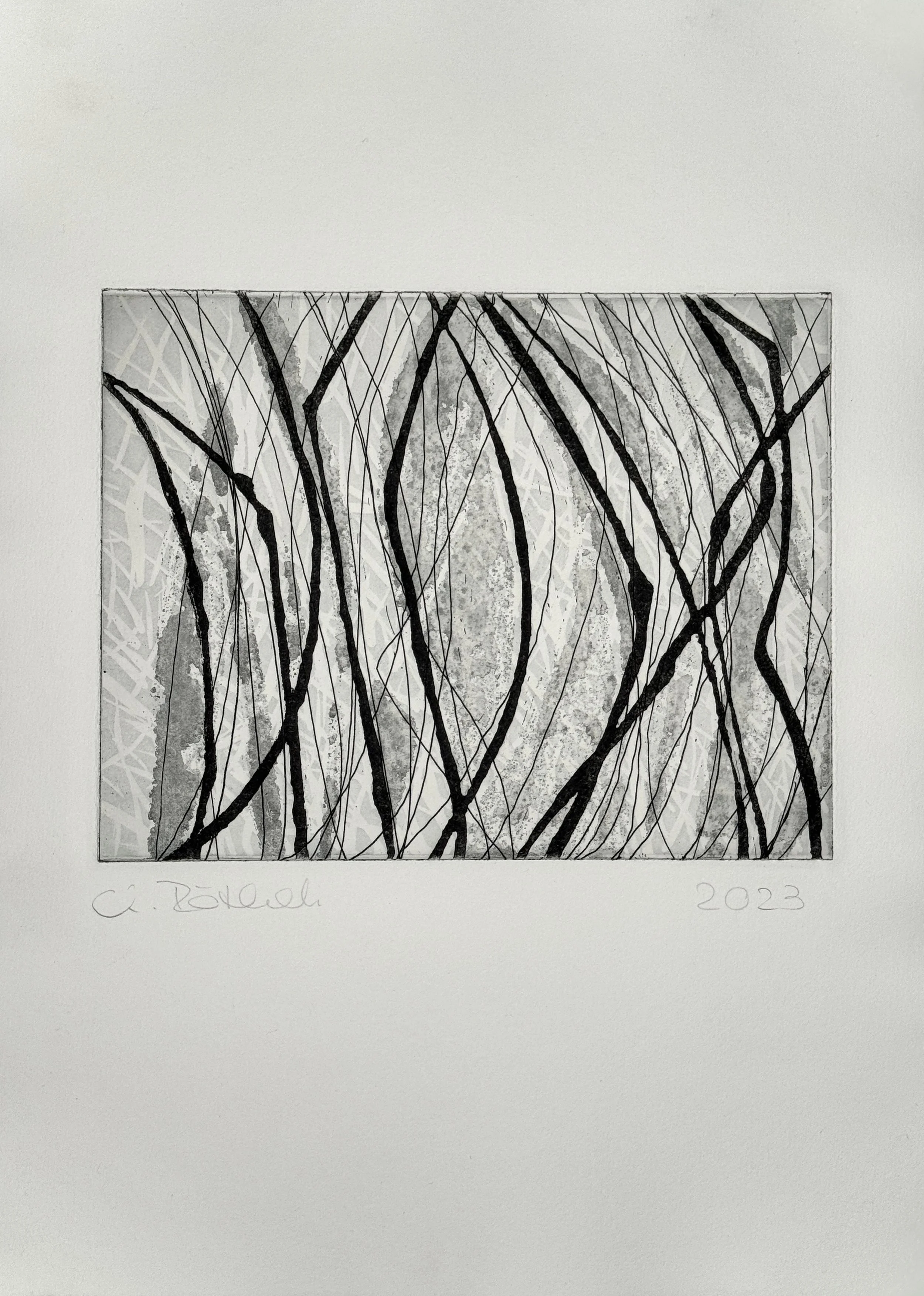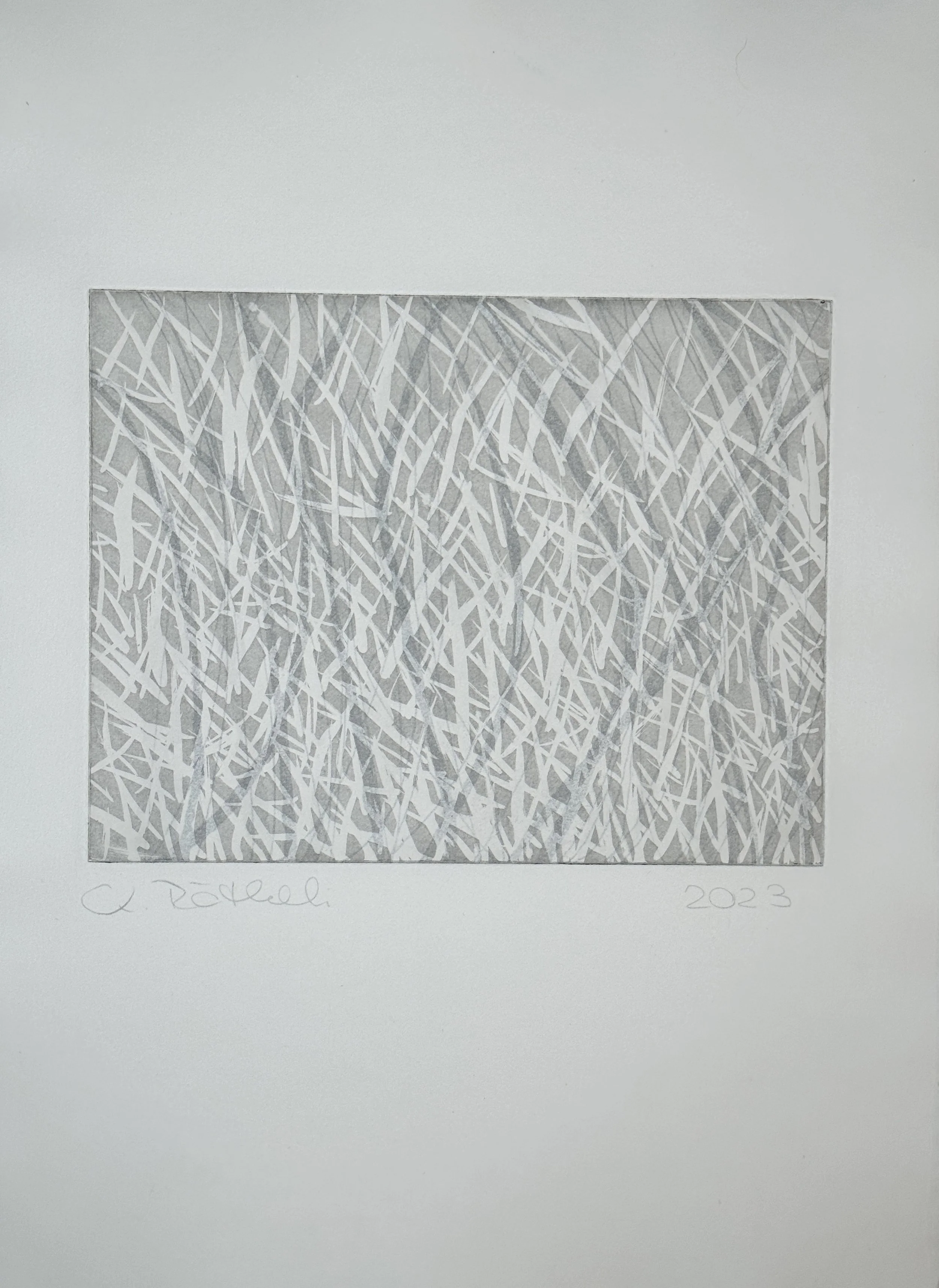 Wiese schwarz, 2023 Dreiplattendruck, Zweiplattendruck, Phantomdruck16,5 x 21,2 cm Im Vollbildmodus anzeigen Im Vollbildmodus anzeigen Im Vollbildmodus anzeigen Im Vollbildmodus anzeigen